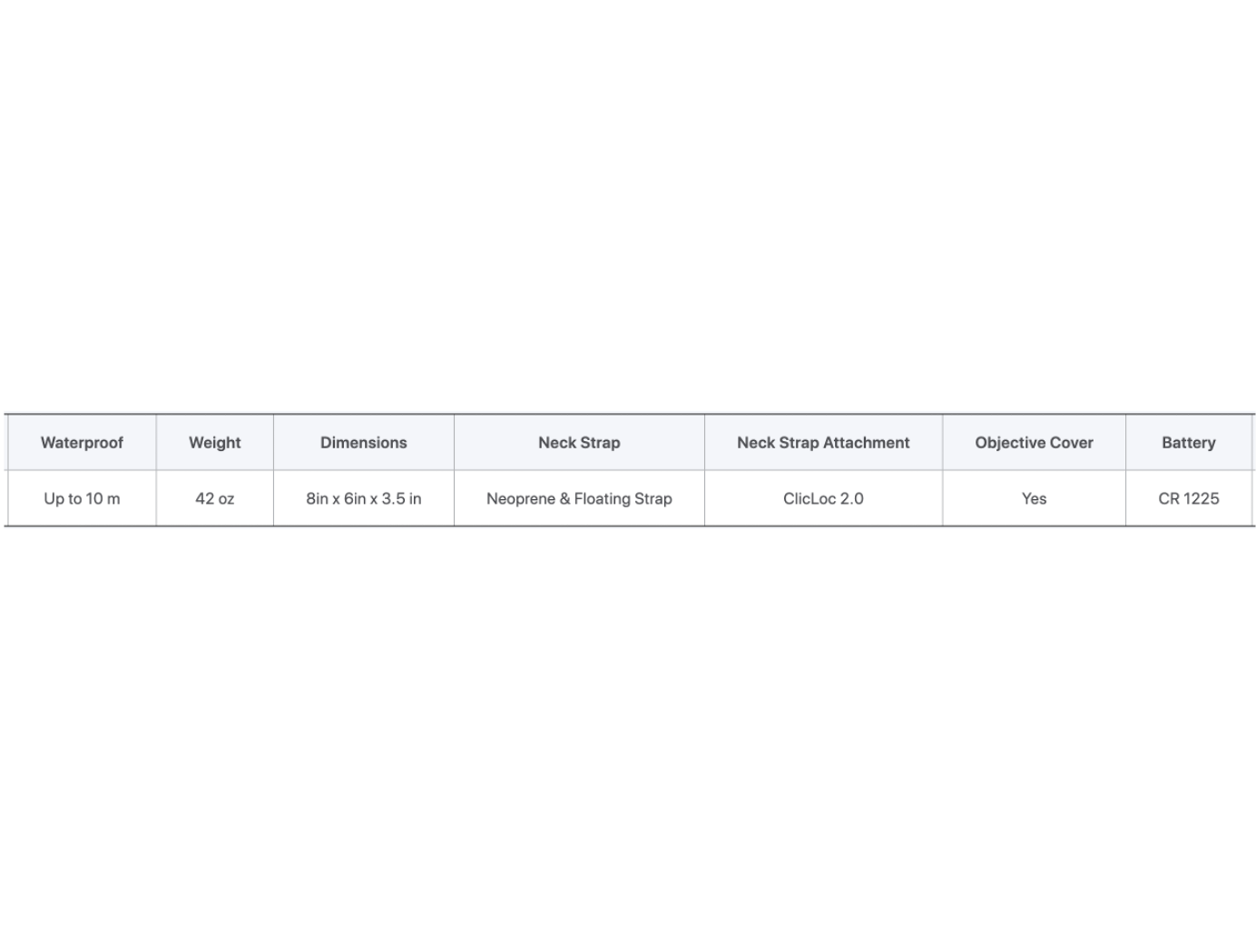 Includes exclusive pouch, Steiner swim strap, ClicLoc 2.0 neoprene strap, rain cover, and lens caps.