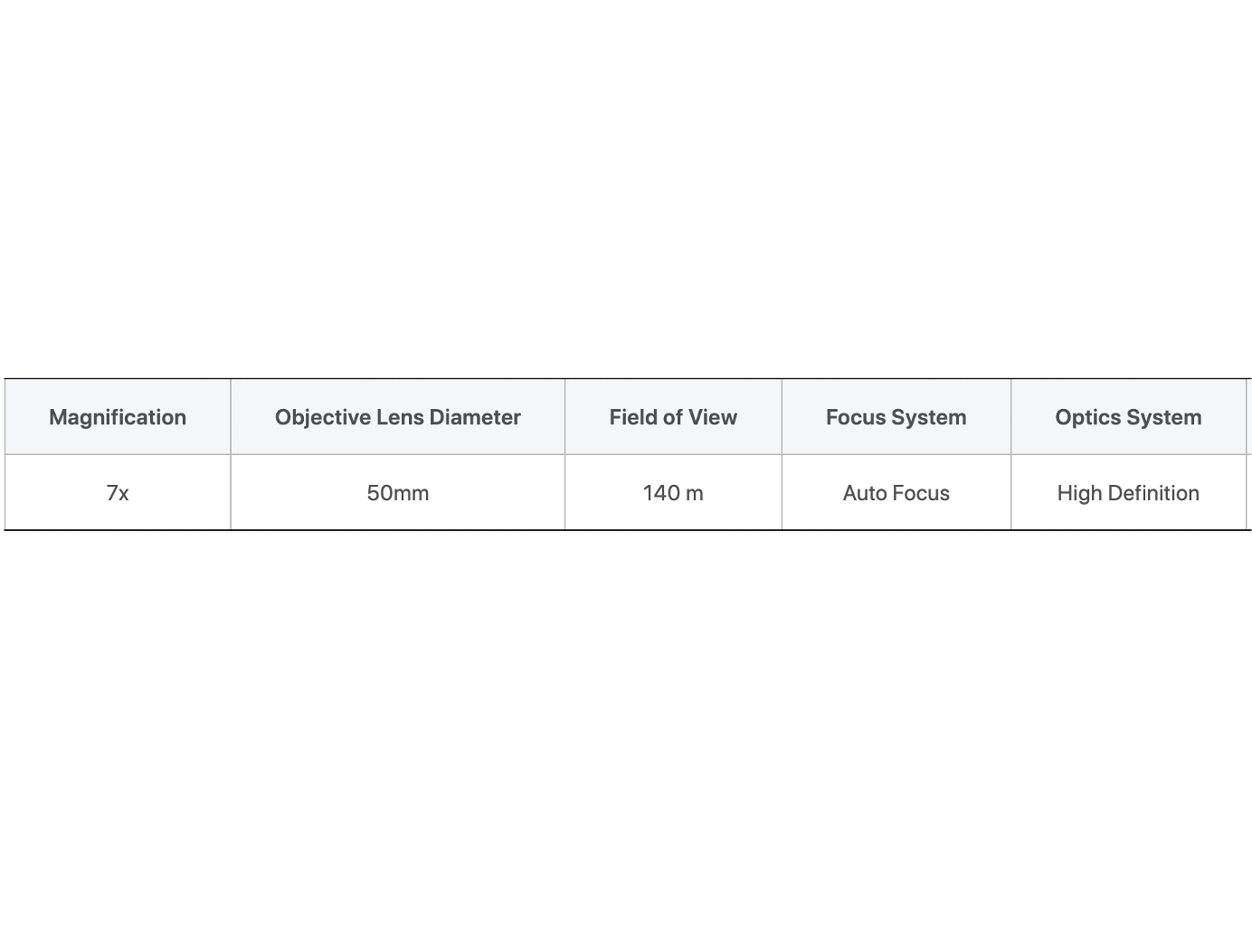 Crystal clear vision even in poor conditions, razor-sharp images without refocusing, XL field of view of 140m / 1000m.