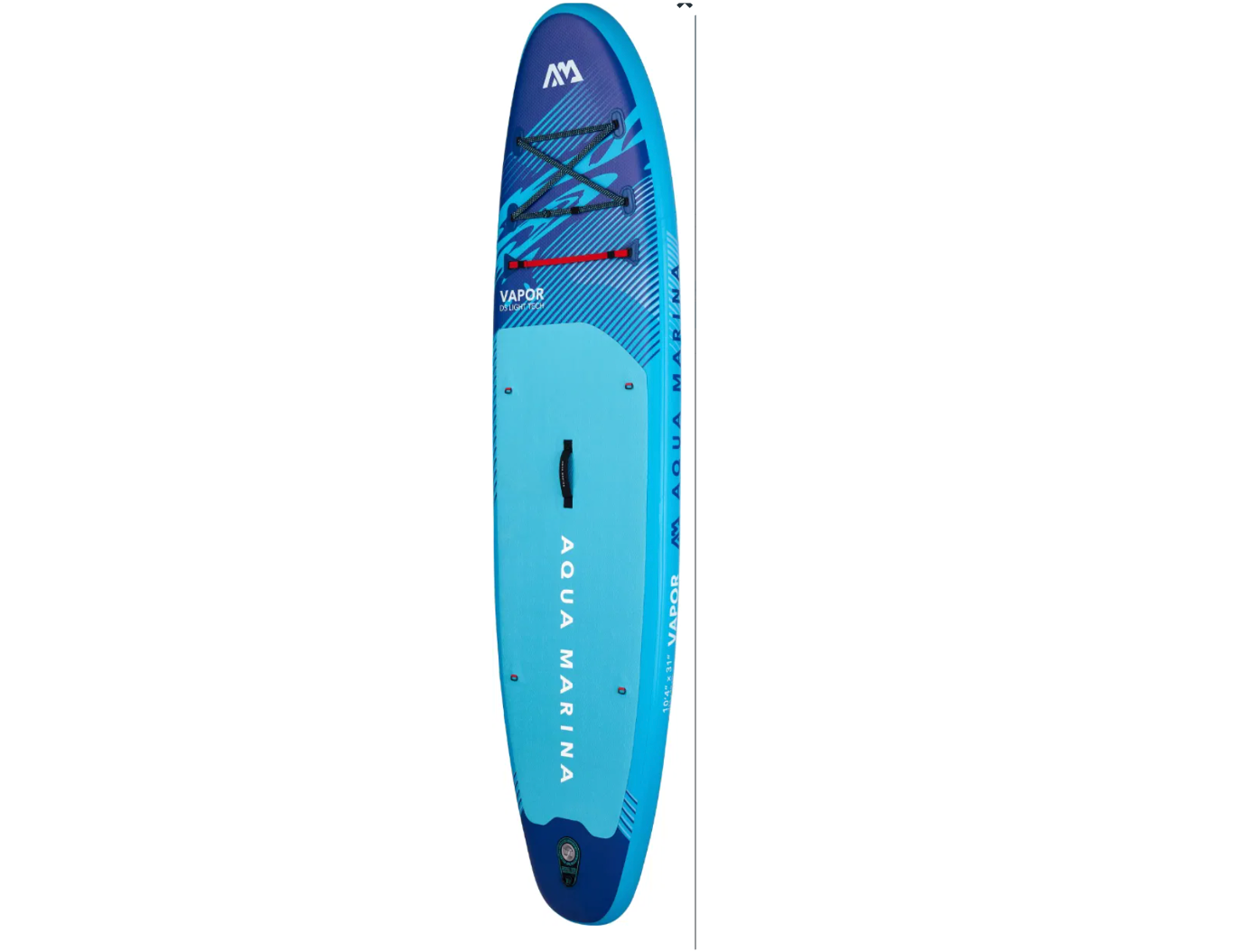 The new VAPOR features increased volume and payload capacity, designed for paddlers seeking a smoother ride and the ability to carry more gear. Its comfortable diamond-groove footpad offers superior grip, while the reinforced stainless steel leash D-ring ensures safety even in small waves.