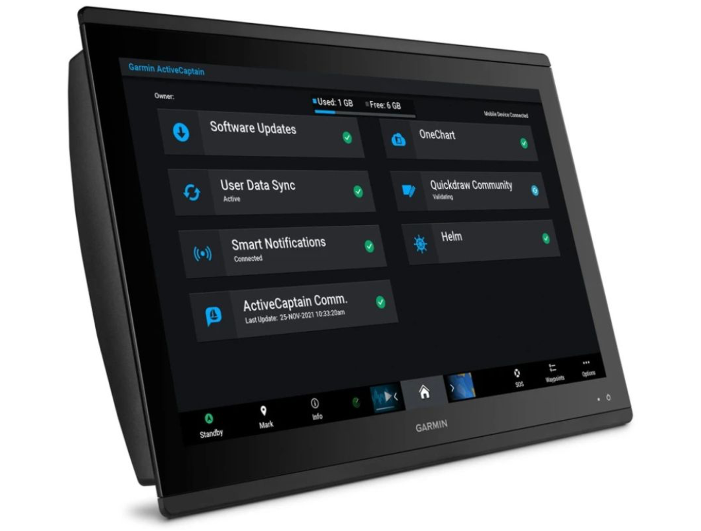 ActiveCaptain App - Built-in Wi-Fi connectivity pairs with the free all-in-one mobile app for access to the OneChart feature, smart notifications, software updates, Helm, Garmin Quickdraw Community data and more.
