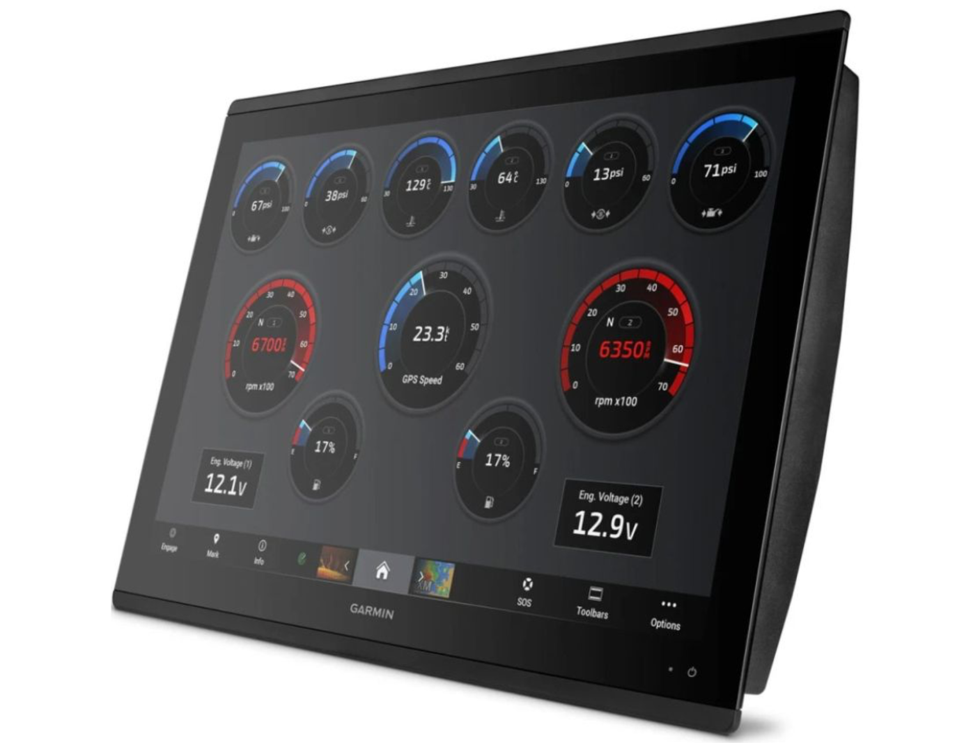 GPSMAP 8424 large-format multifunction display features a 24-inch full HD screen with touch control. Sunlight-readable, anti-glare display is exceptionally easy to view and also includes auto-dimming feature for use in low light or at night. New maximum glass design enables you to experience a beautifully powerful, completely networked helm at your fingertips.