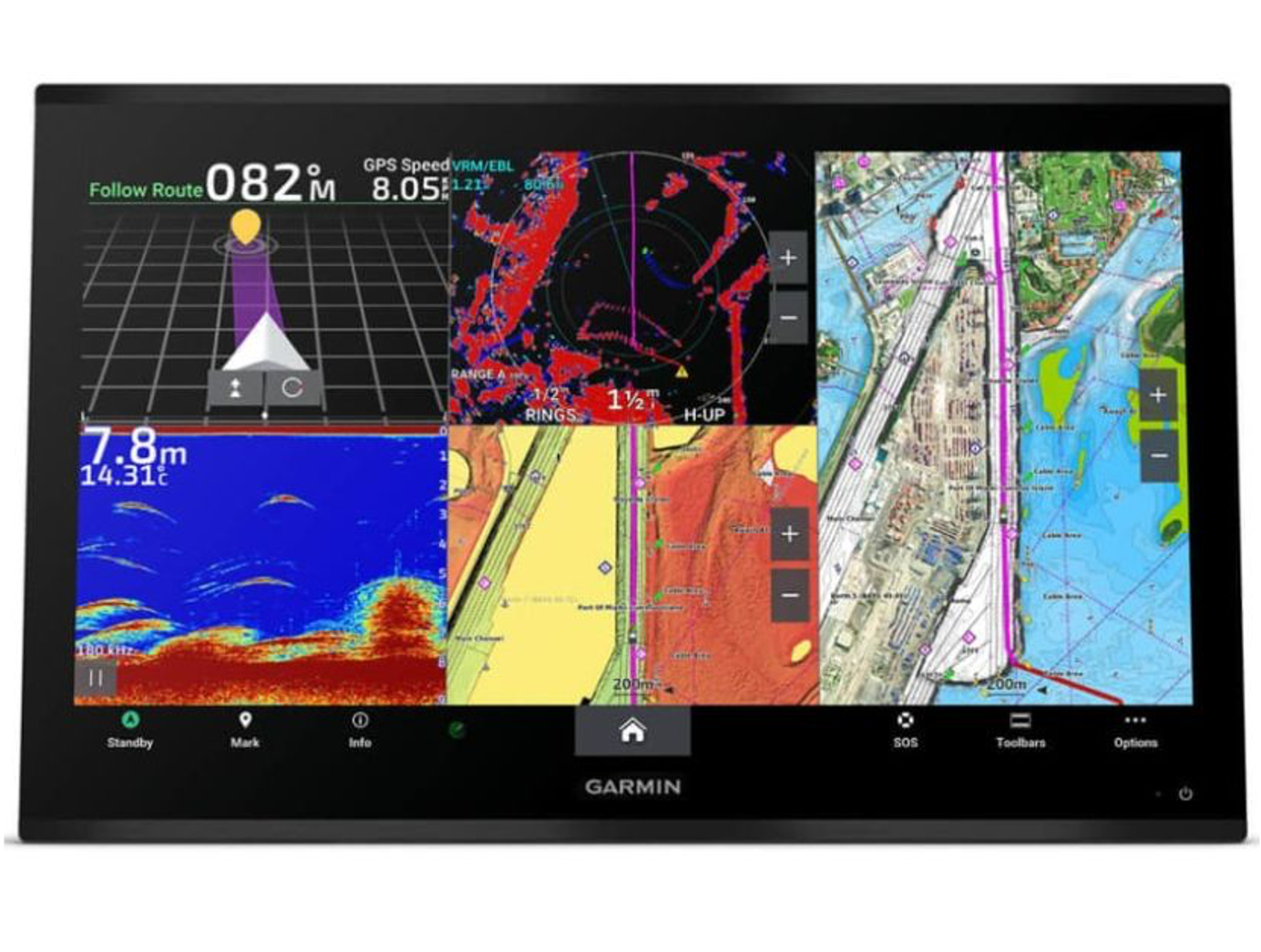 Garmin Bluenet Network - Build extensive networks with multiple chartplotters, cameras, radars and sonars - and enjoy 10 times faster networking speeds with minimal lag.