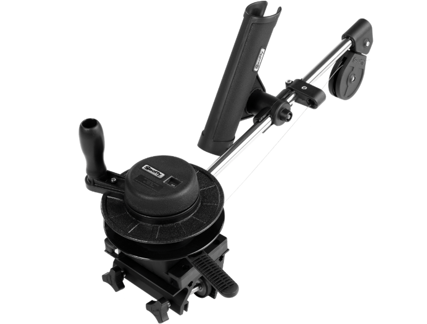 The all time Scotty leader in performance and sales. Compact, versatile and reliable, the perfect introductory downrigger. One foot per turn spool operates easily with either hand from a sitting position in the boat. 23″ long, ¾” diameter boom. Spray protected positive-drive depth counter. Boom mounted adjustable 355 Rodmaster II Rod Holder Includes 1010 Quick-Slide Deck Mounting Bracket. Clutch brake with the largest braking surface in the industry.
