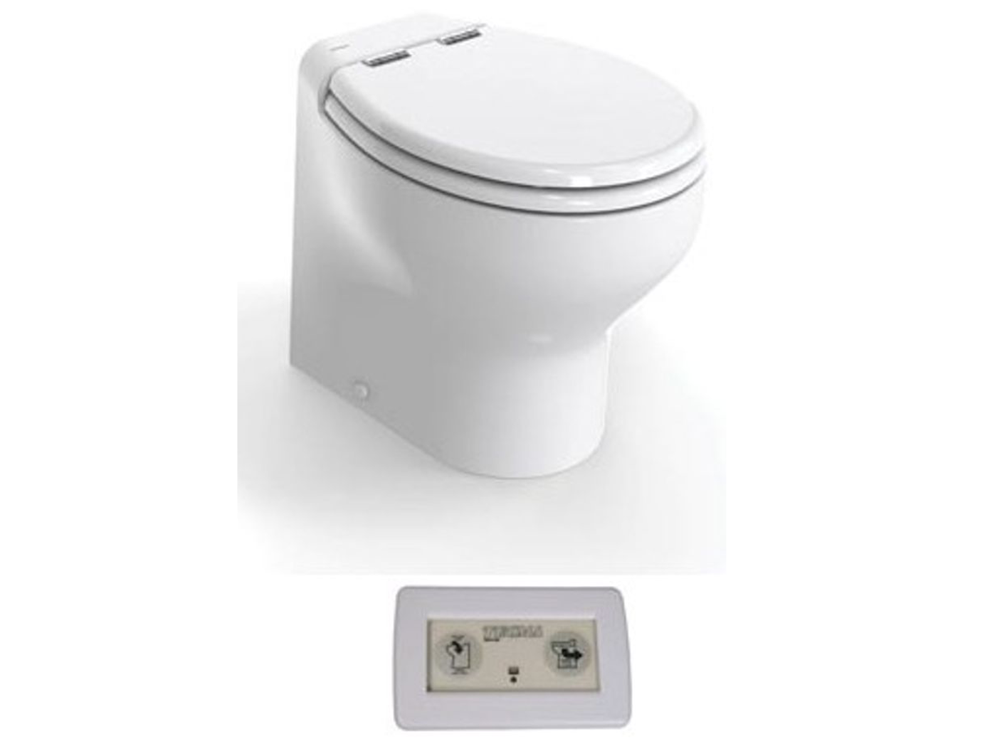 Tecma 2G Silence Plus Hi toilet features a strong polyester-coated wooden seat and soft-closing cover with AIS316L stainless steel and Sugatsune™ dampers. It has the same footprint, outer dimensions and strong macerator technology as previous models, but with an improved design and system.