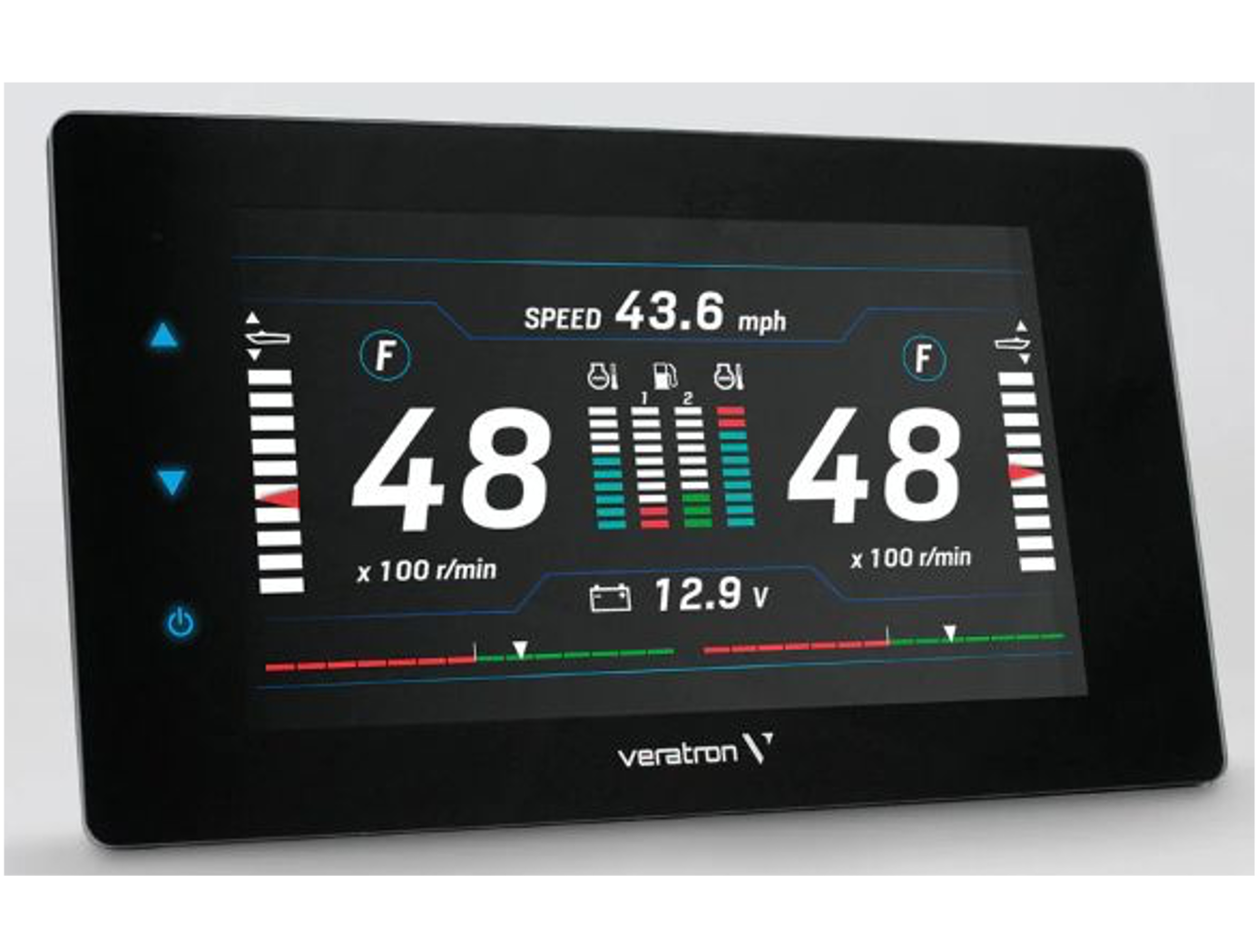 Easily configured to display information from up to four engines when connected to NMEA2000 or two engines via J1939 or analog inputs simultaneously, it has large possible setting. This allows users to group similar items such as single or dual engines, battery performance, fuel, water, waste, tank level, rudder and trim, onboard systems, navigation and weather, if desired.